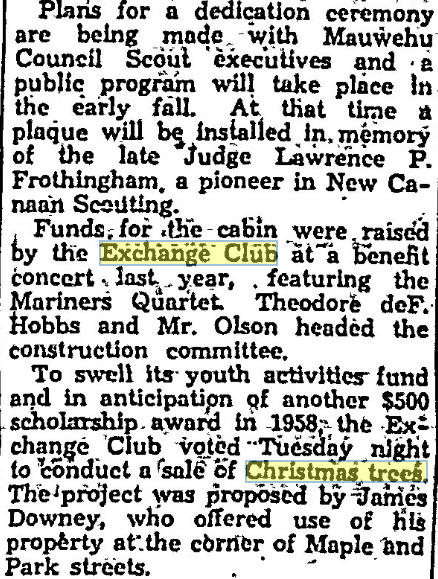 - The Exchange Club has been selling Christmas tree and wreaths benefiting local charities for over 50 years in New Canaan.
